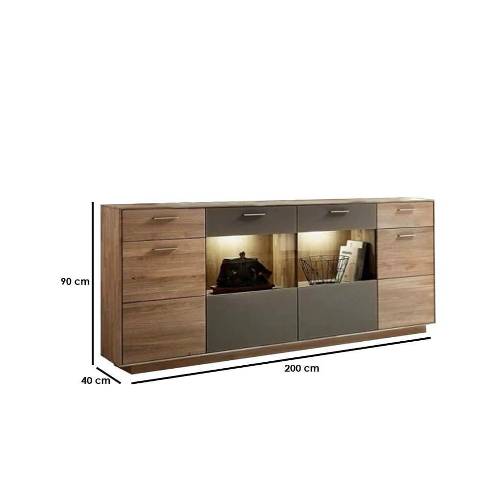 بوفية عصري مصمم لتلبية احتياجاتك التخزينية، يتميز بأسطح علوية واسعة لعرض القطع الفنية والكتب، وأدراج واسعة لتخزين الأغراض