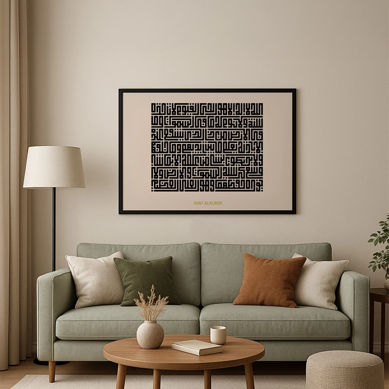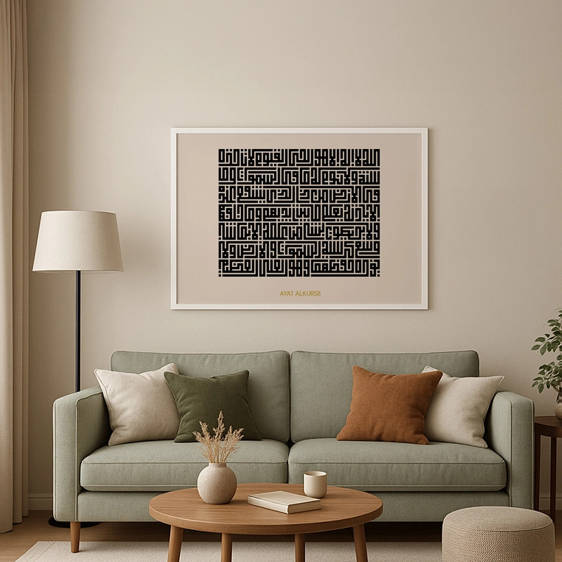 Elevate your space with this stunning Ayat Al-Kursi Islamic calligraphy wall art, one of the most powerful verses in the Quran, symbolizing divine protection, wisdom, and faith.