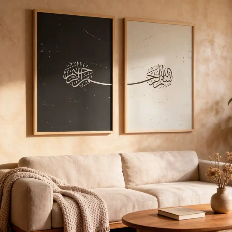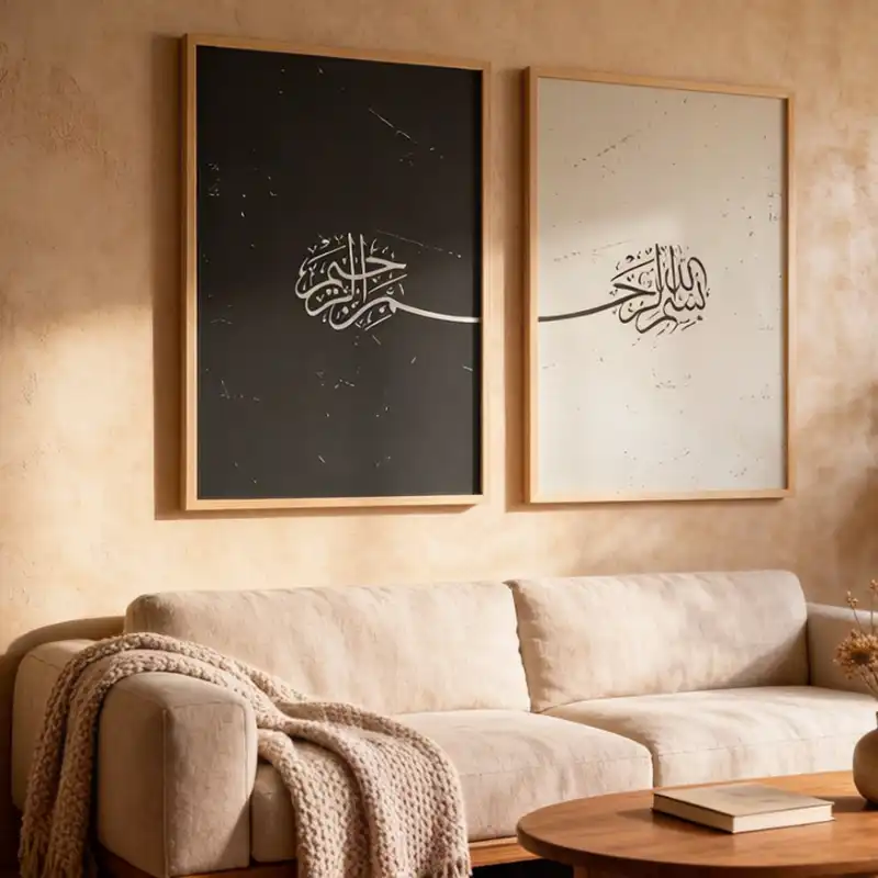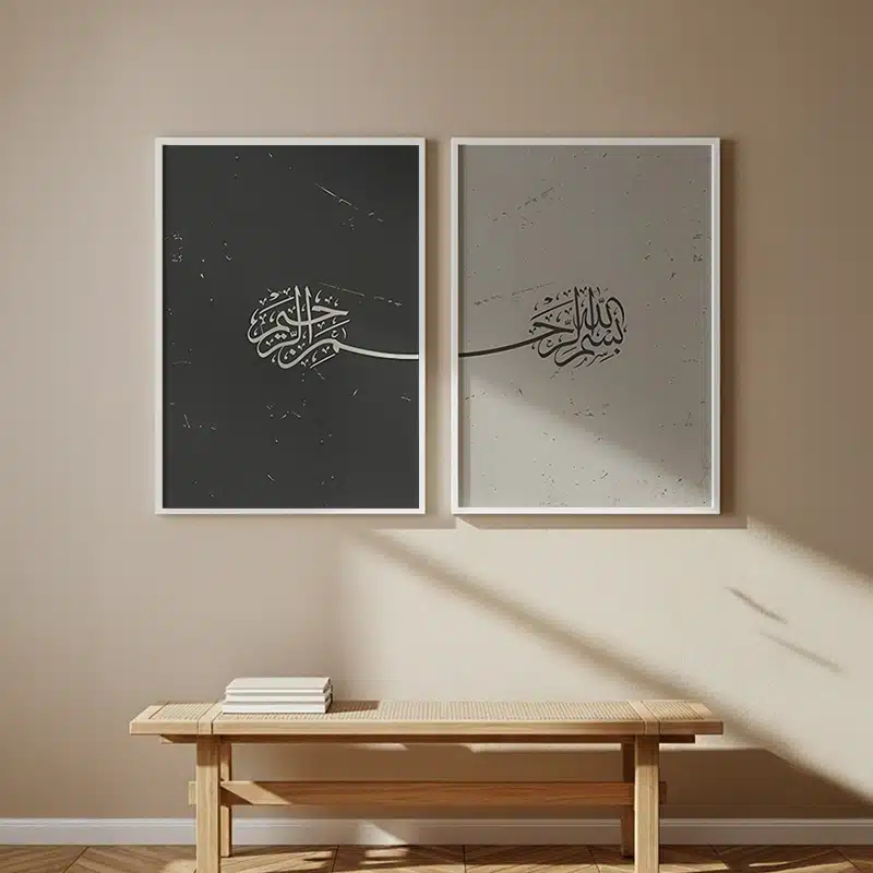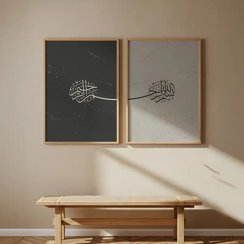 Bismillah Islamic Calligraphy Wall Art Set – Minimalist Arabic Wall Decor (2-Piece Set)
