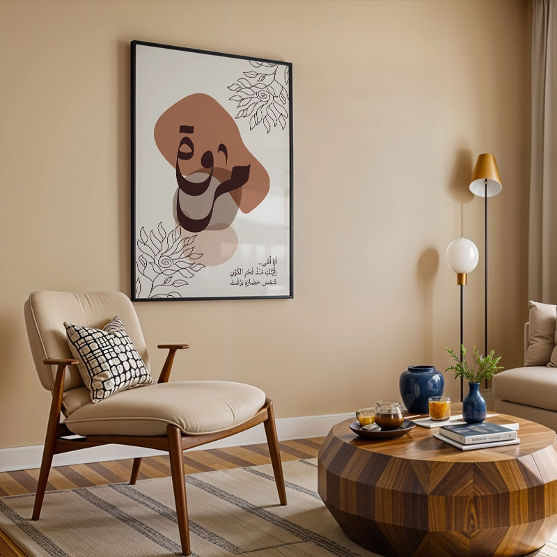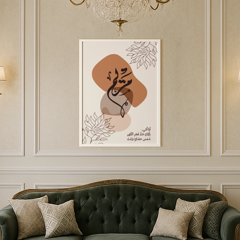 Enrich your space with Whispers of Elegance, a mesmerizing Arabic calligraphy artwork that embodies beauty and meaning. Featuring warm earthy tones, fluid calligraphy, and delicate botanical accents, this piece seamlessly blends cultural heritage with modern sophistication.