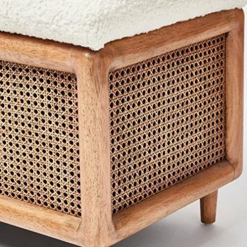 Boho Style Rattan Bench with Hidden Storage – Soft Cushioned Seat DE004