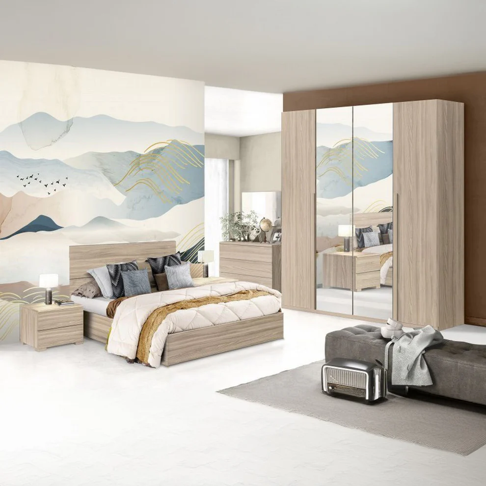 A bedroom where luxury and elegance intertwine, a sanctuary of natural wood and refined aesthetics.