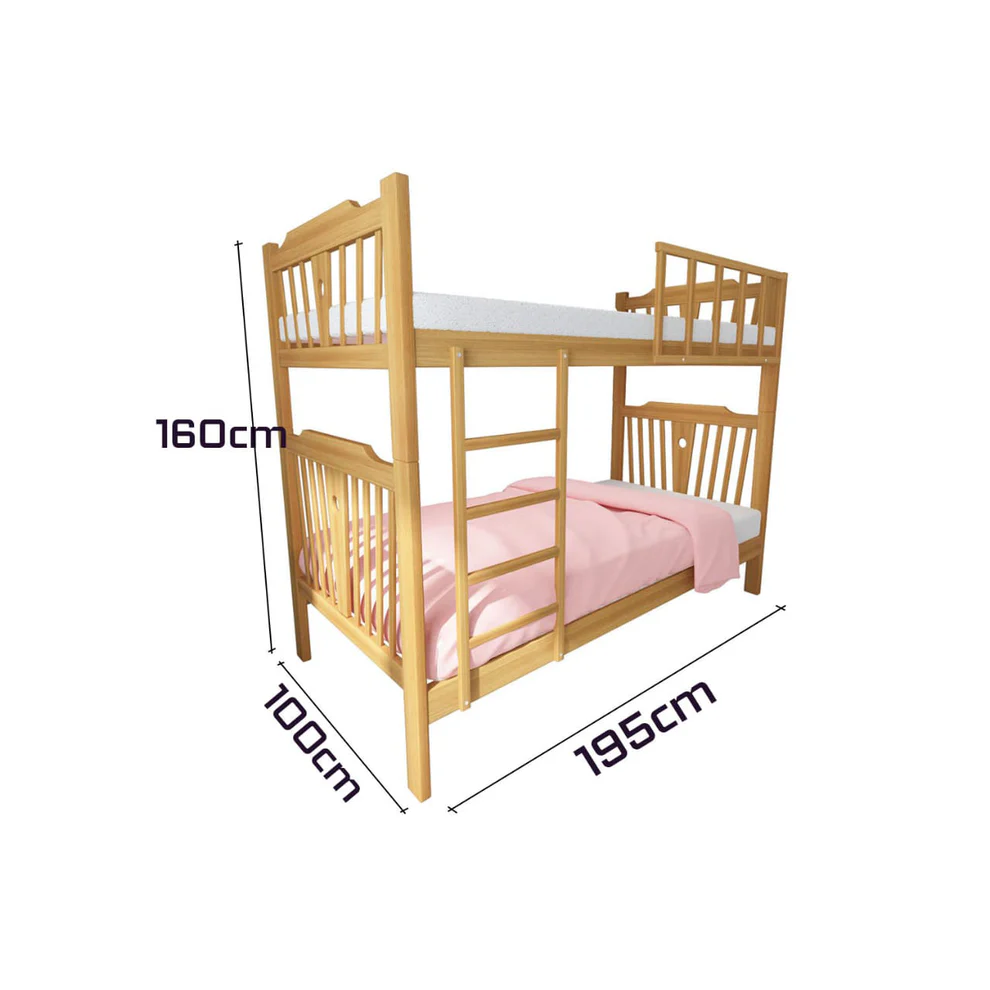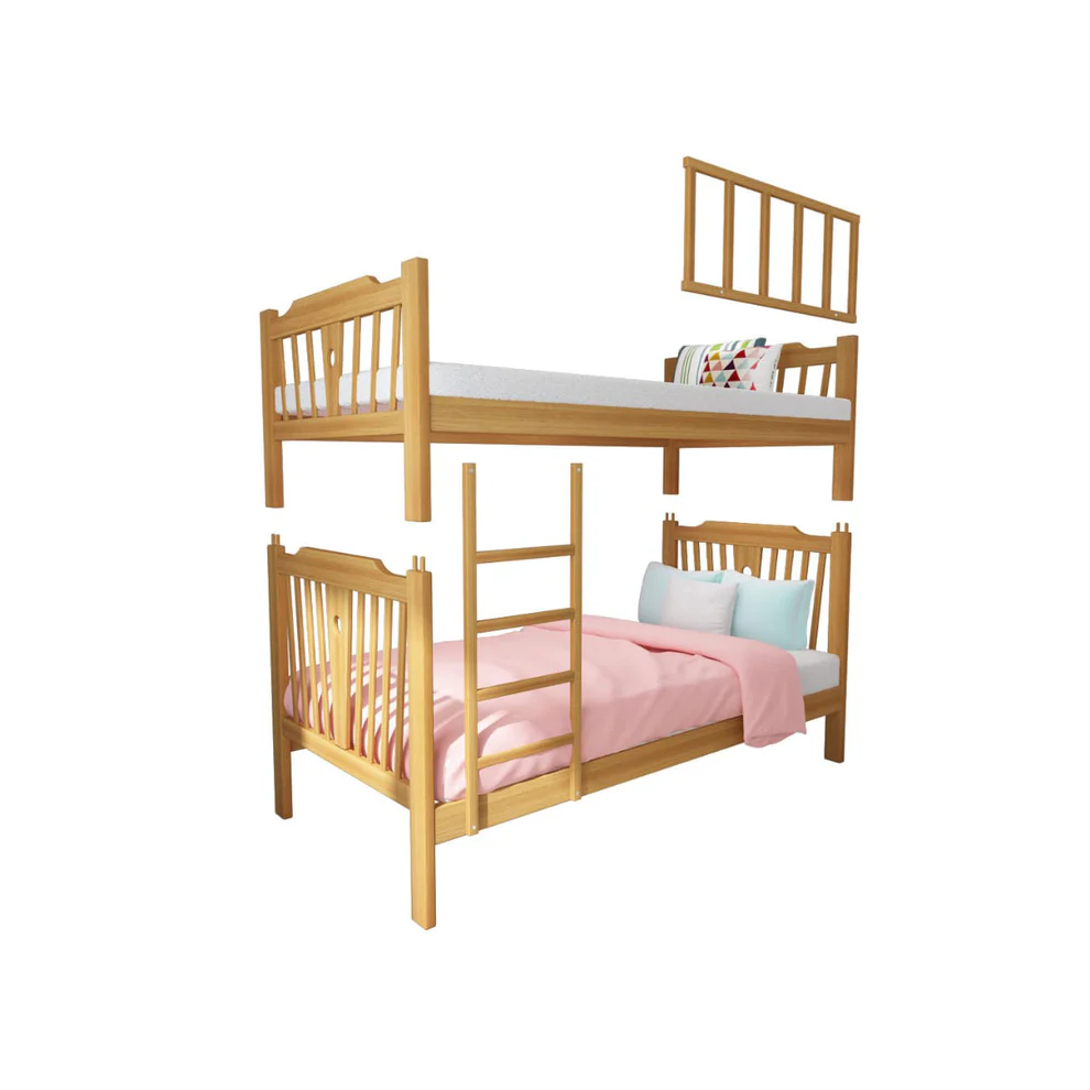 A stylish and modern bed, meticulously crafted for children’s rooms, is made from premium red beech wood renowned for its durability and ability to withstand daily use. This bed offers an ideal solution to maximize space in a room and provide a comfortable sleeping area for two children.
