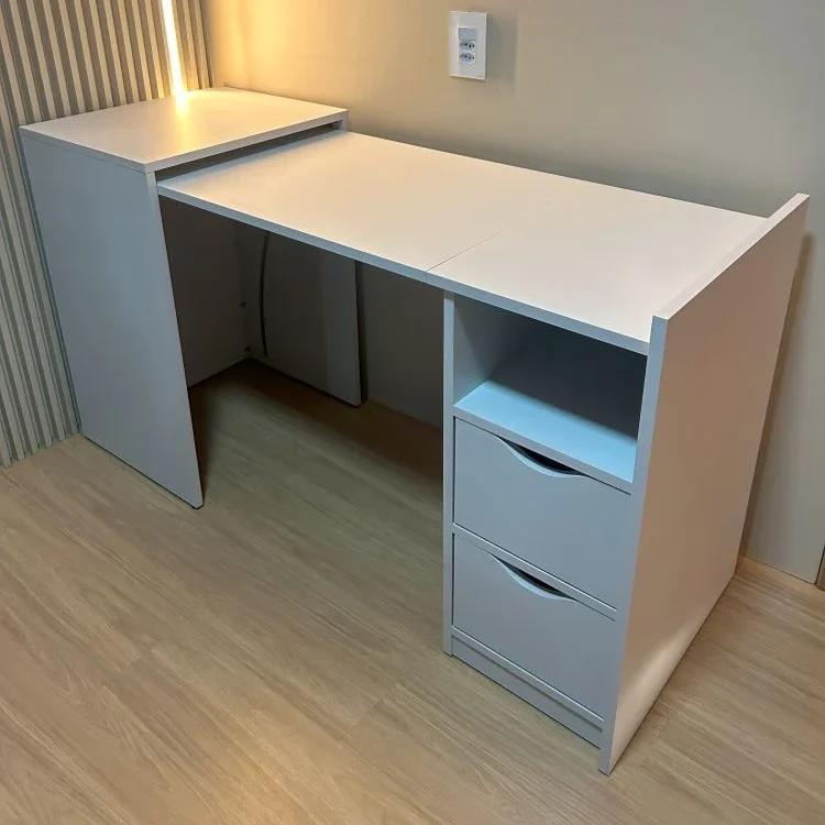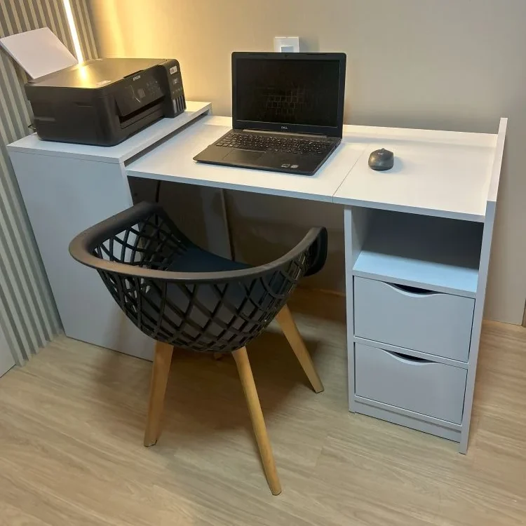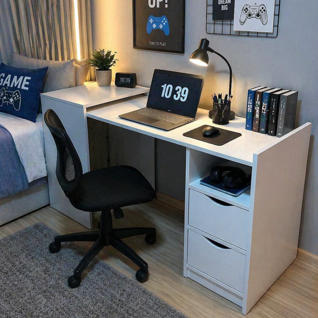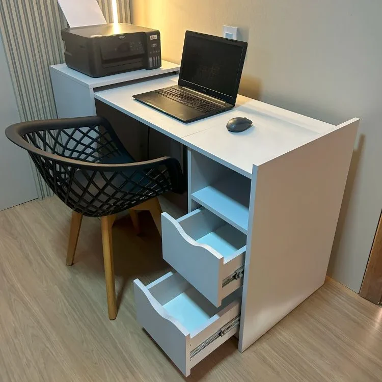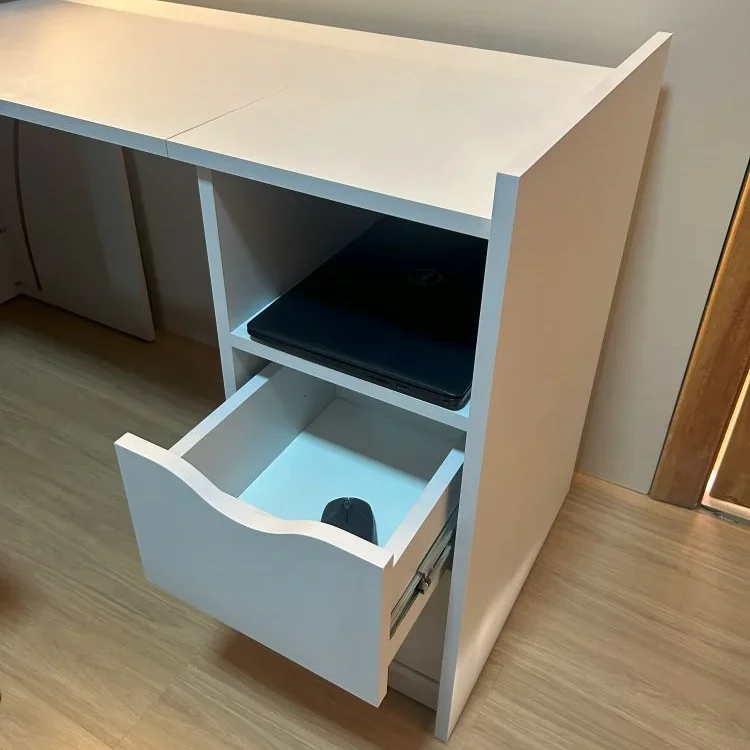 This innovative design features a foldable extension that easily transforms from a full workstation into a compact unit. When closed, it becomes a neat side cabinet with a dedicated top surface—perfect for placing your printer or décor—saving space without compromising functionality.