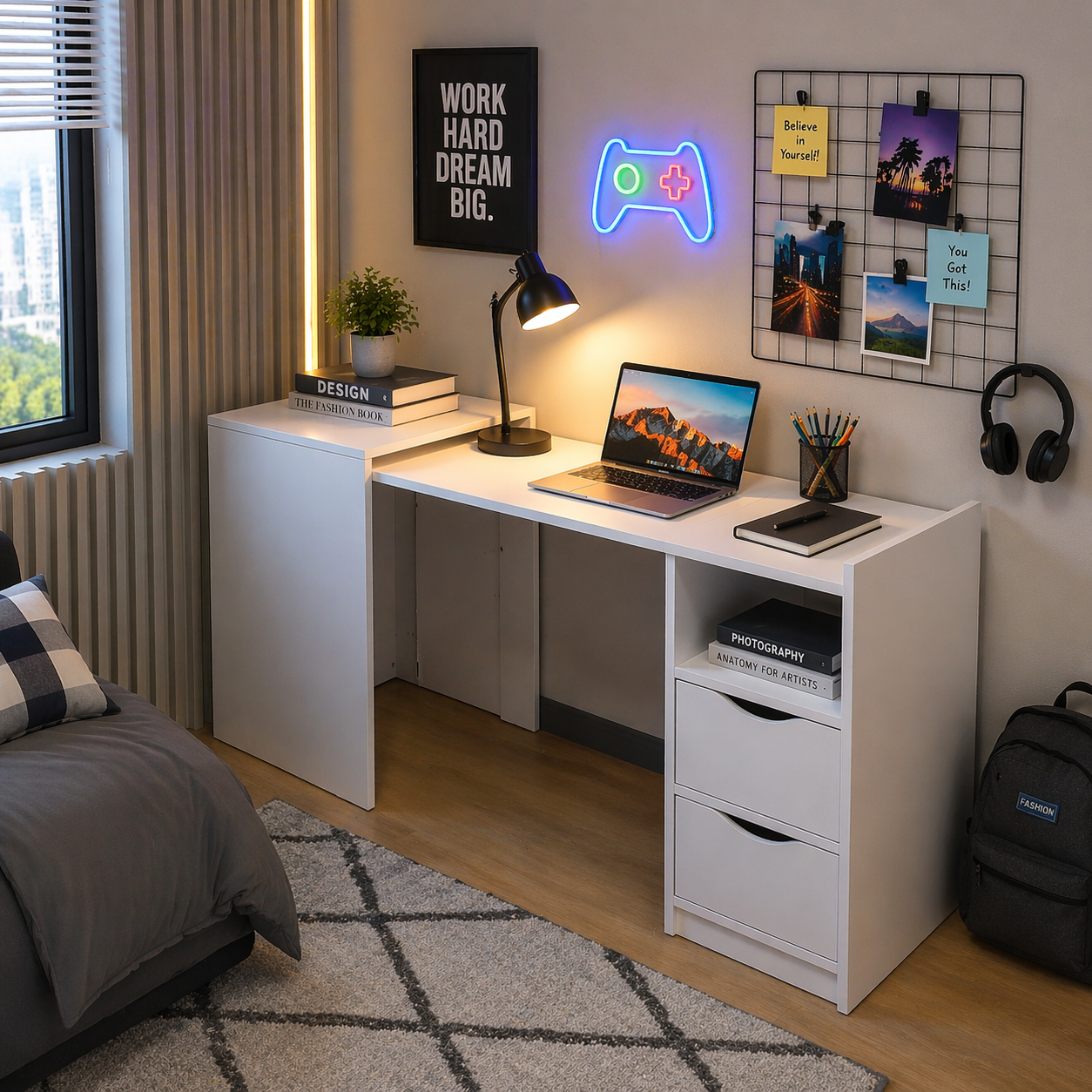 Perfect for anyone looking for a practical, stylish, and space-efficient workspace solution.