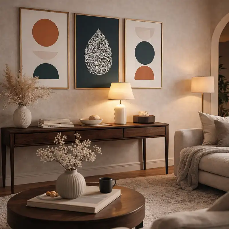This Islamic calligraphy wall art set transforms your space instantly by creating a balanced, designer gallery wall without the effort of matching multiple artworks.