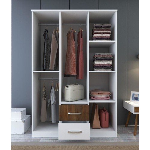 A modern wooden wardrobe made of high-quality wood, characterized by its elegant design and straight lines. The wardrobe provides ample storage space thanks to its hidden drawers and adjustable shelvesIn Stock