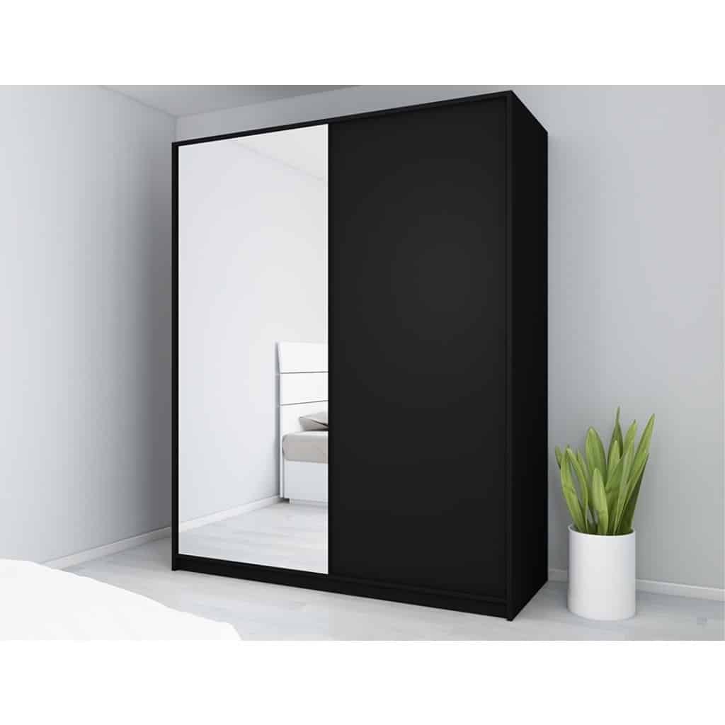 A modern wooden wardrobe made of high-quality wood, characterized by its elegant design and straight lines.The wardrobe provides ample storage space thanks to its hidden drawers and adjustable shelvesIn Stock