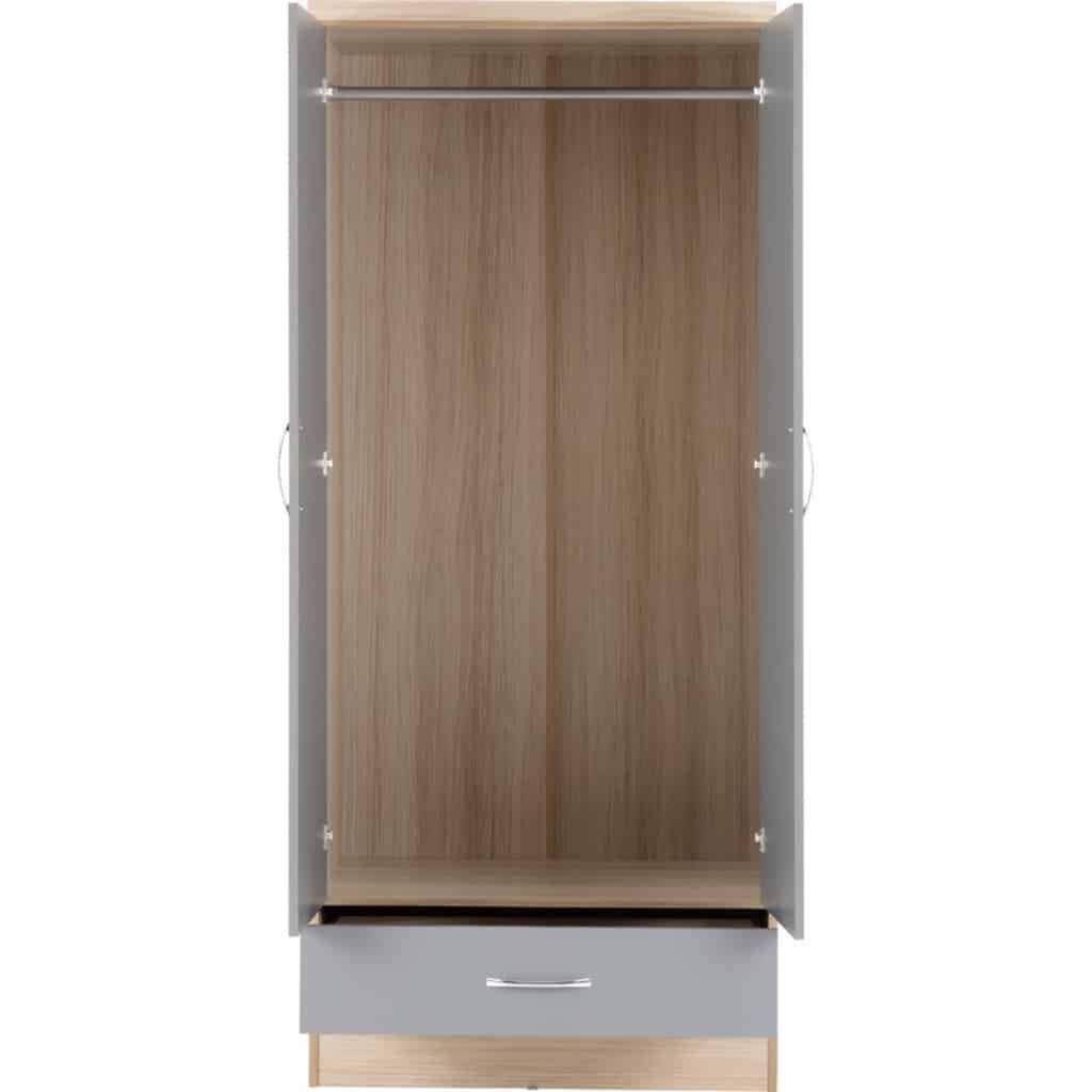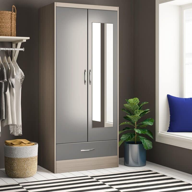 A modern wooden wardrobe made of high-quality wood, characterized by its elegant design.In Stock